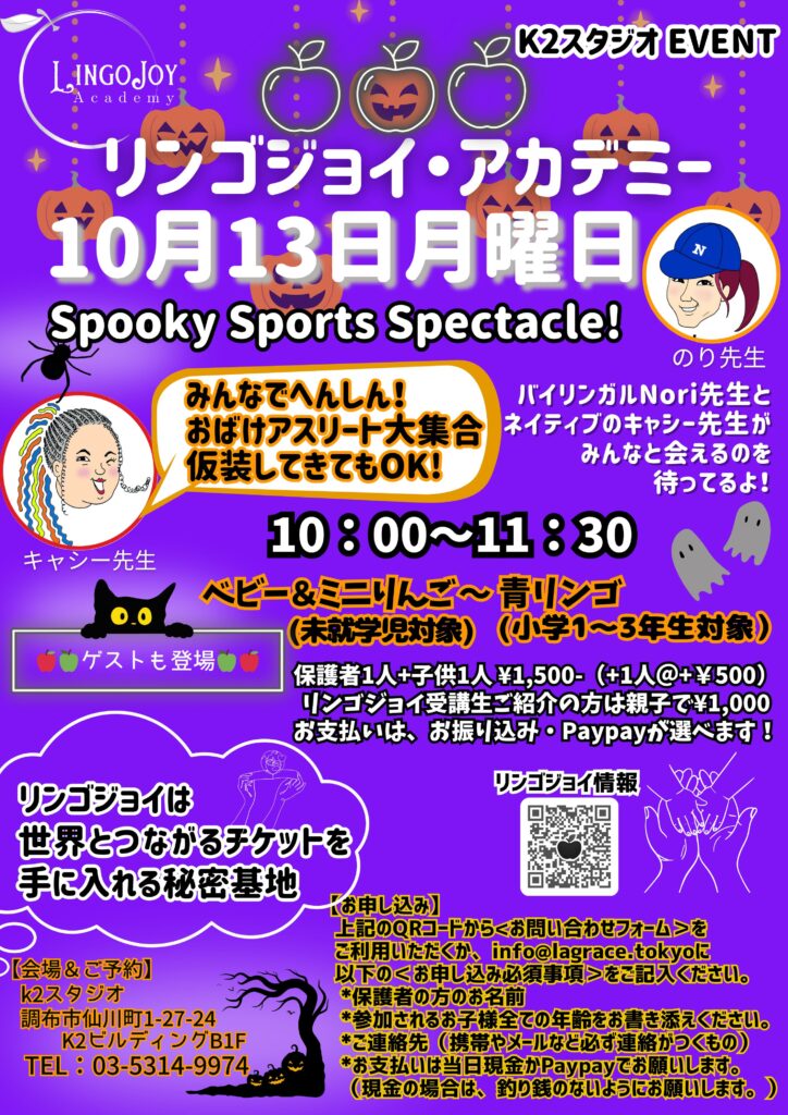 10月13日(月)祝日: ハロウィン・イベント 10:00~11:30 上級生たちのパフォーマンスもあるよ♪
